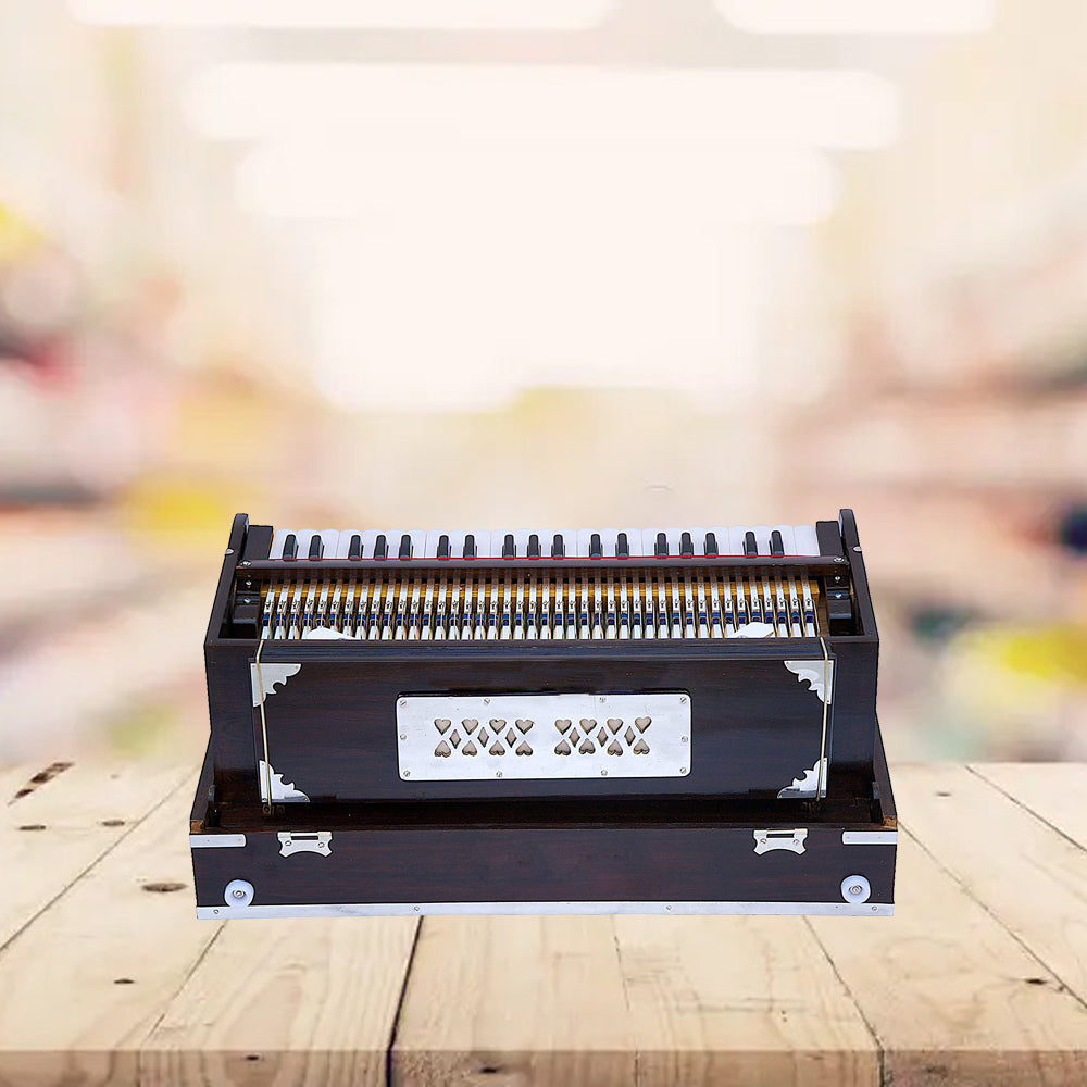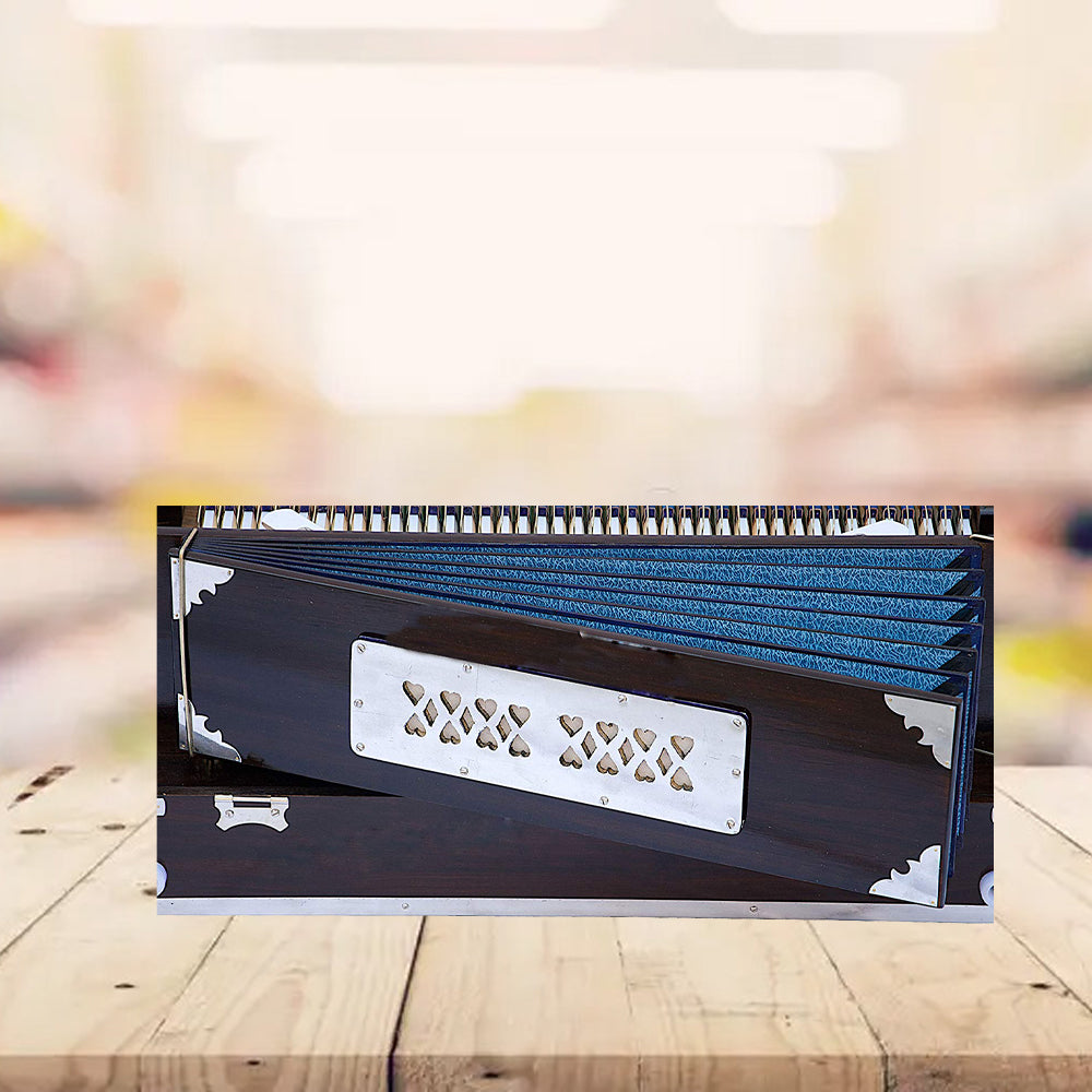 - Unleash your creativity with the Bina harmonium, a beautifully crafted instrument made from natural wood. Featuring 9 stops and two reeds, this traditional style