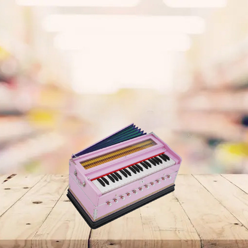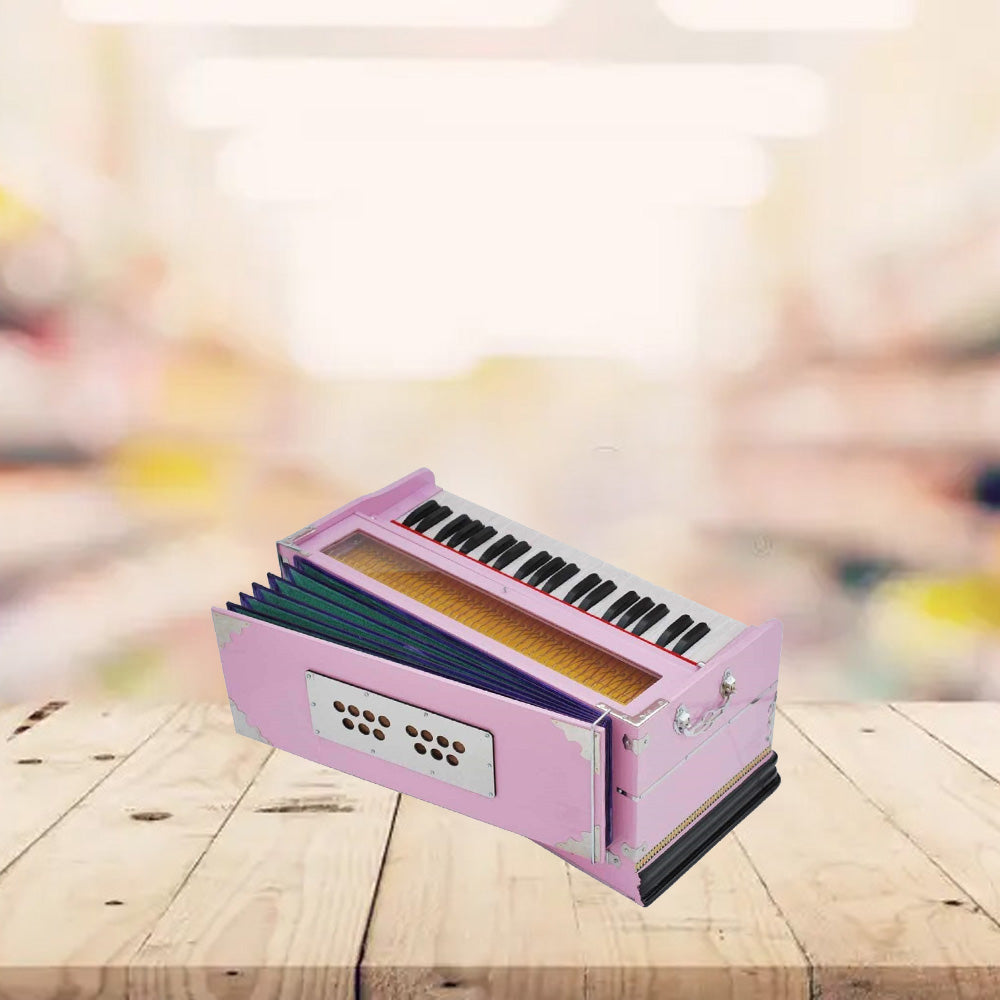 - Unleash your musical creativity with the Harmonium Portable Type by Kaayna Musicals. This instrument features 9 stops, including 5 main and 4 drone stops, 3½ octaves, and a coupler for versatile playing options. With a beautiful teak color finish and bass-male reed tuned to 440 Hz, this harmonium is suitable for various musical practices like yoga, bhajan, kirtan, and mantra. The folding design makes it easy to carry in the included gig bag, making it perfect for musicians on the move.