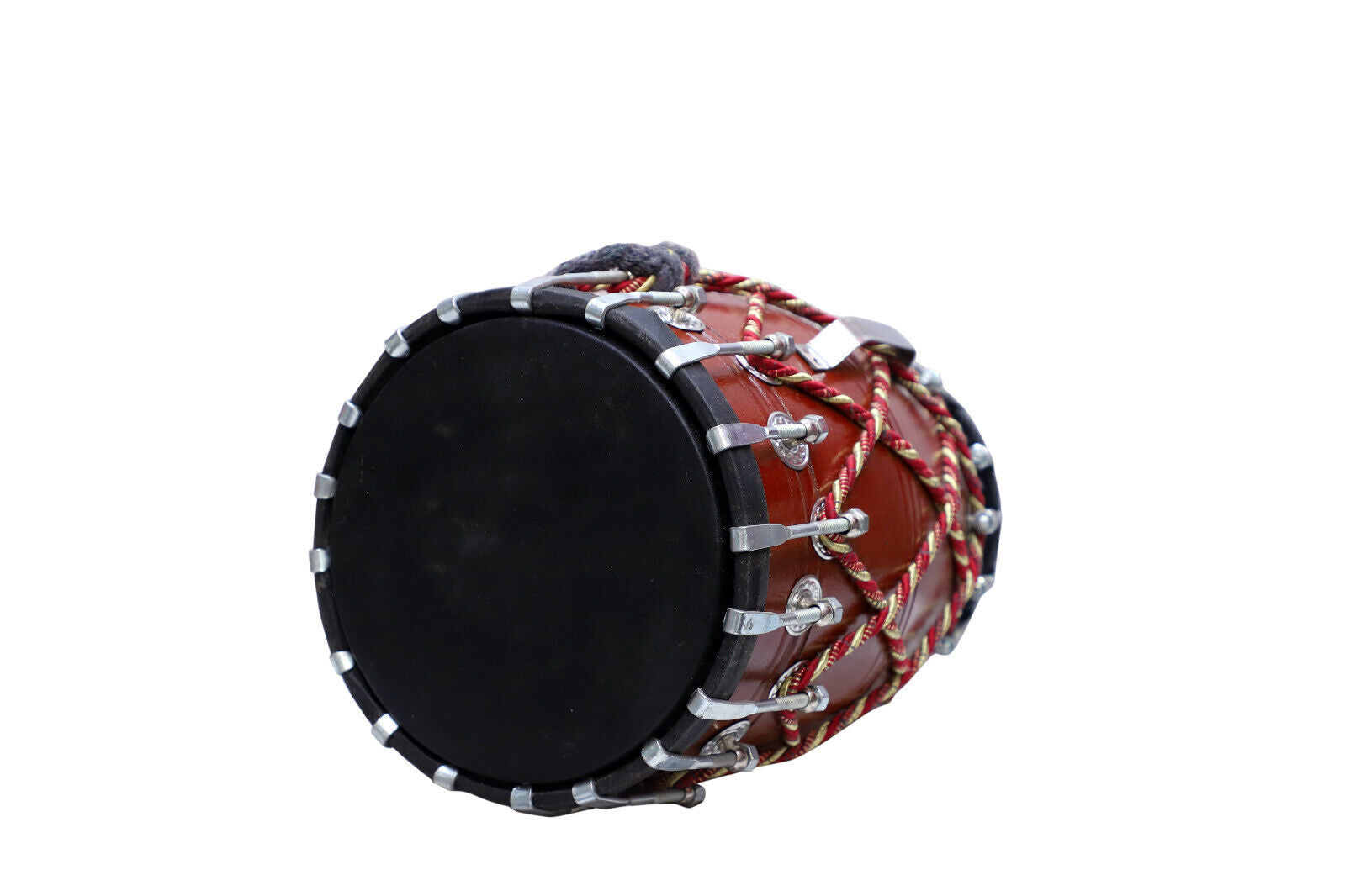 Dholak for festivity/wedding/satsang - very easy to tune - professional grade dholak, thoroughly dried Teak wood - perfectly symmetric round dholak Nickel plated bolts & nuts, tuning spanner included